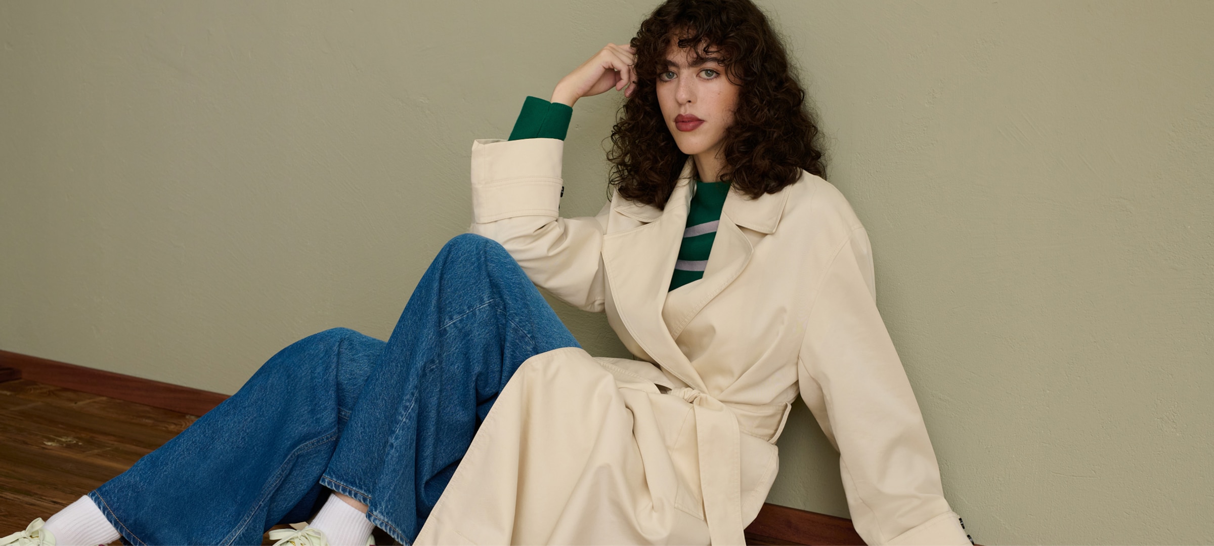 Turtleneck Sweater And Green Jeans Look